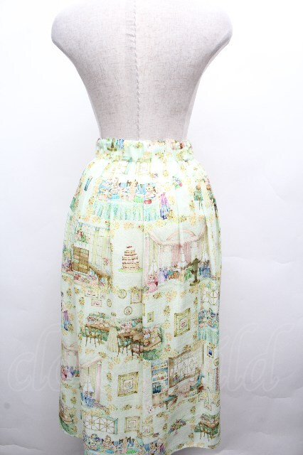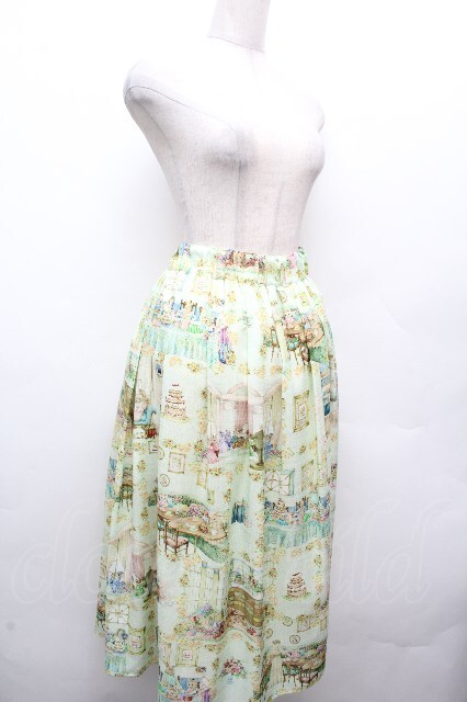 yukiemon / ゆきえもんちで朝食をテキスタイルふんわりスカート 3L ミントグリーン S-26-04-04-074-0-SK-AS-ZS [2100020000039711-S-26-04-04-074-0-SK-AS-ZS]