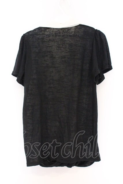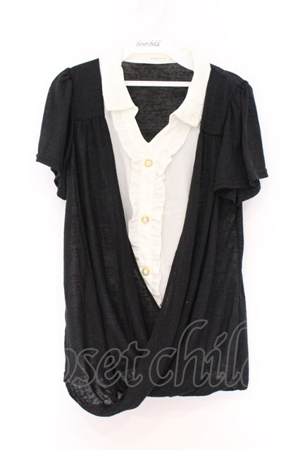 axes femme / 開衿シャツレイヤードカシュクール風Tシャツ M クロ×アイボリー O-26-04-05-012-AX-TO-IG-OS