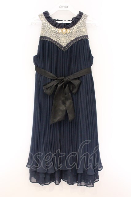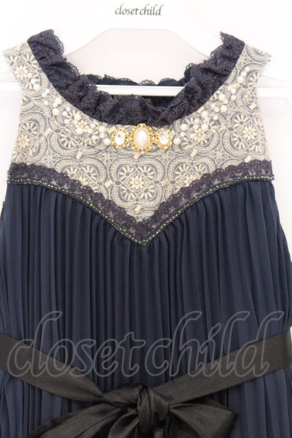 axes femme / ラメ刺繍プリーツドレス ネイビー O-26-04-05-022-AX-OP-IG-OS