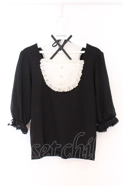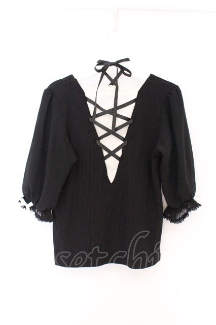 NOEMIE / チョーカー風レースアップカットソー M クロ×シロ O-26-04-05-054-LO-TO-OW-OS