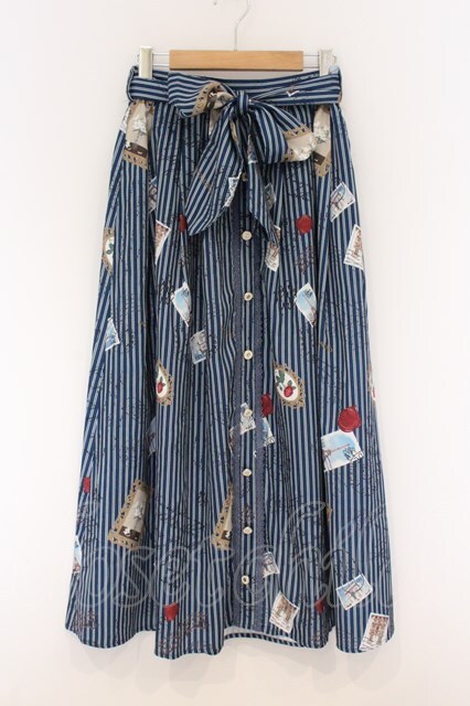 axes femme / ボン・ヴォヤージュ柄スカート ネイビー O-26-04-05-038-AX-SK-IG-OS