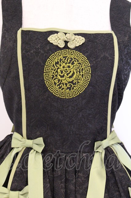 axes femme kawaii / 牡丹刺繍チャイナジャンスカ M クロ×グリーン O-26-04-05-080-AX-OP-OW-OS