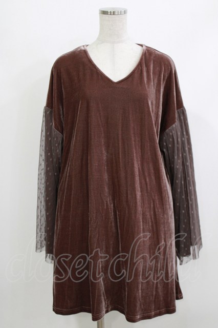 merry jenny / ドットチュールベロアワンピース ブラウン H-26-04-10-025-LO-OP-KB-ZH [2100030000091106-H-26-04-10-025-LO-OP-KB-ZH]
