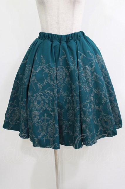 Ozz Croce / プリントギャザースカート グリーン×グレーチュール H-26-04-10-014-OO-SK-KB-ZH