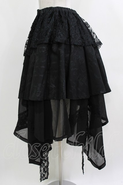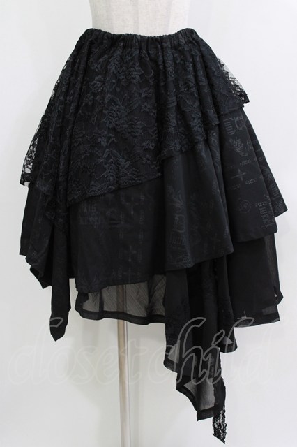 h.naoto Blood / 異素材レイヤードアシメスカート 黒 H-26-04-10-013-HN-SK-AK-ZH [2100030000091170-H-26-04-10-013-HN-SK-AK-ZH]