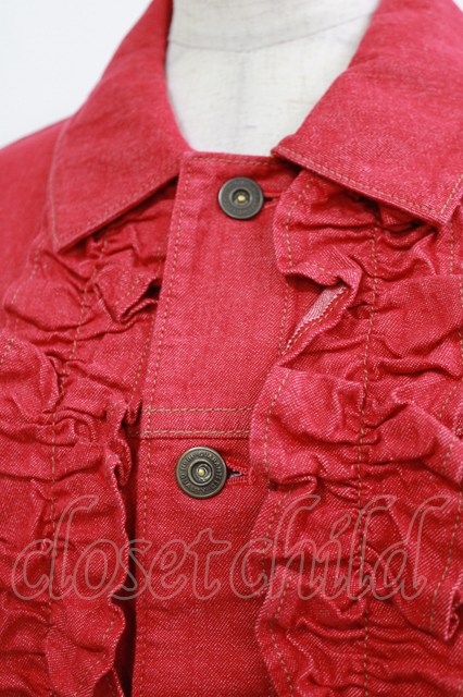 Jane Marple / フリルトリムデニムブルゾン レッド H-26-04-10-028-JM-JA-KB-ZH