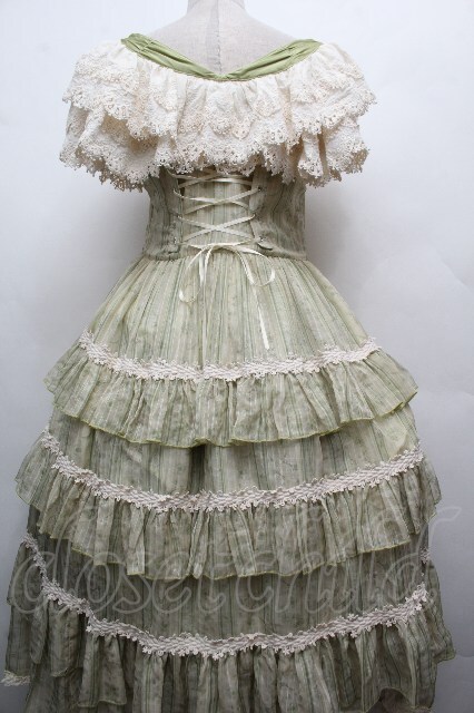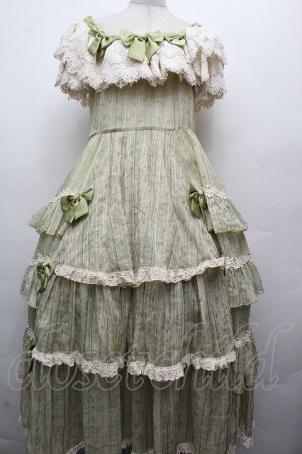 Hoshibako Works / 避暑地の午後 フリルシフォンワンピース グリーン S-26-04-05-052-LO-OP-HR-ZS