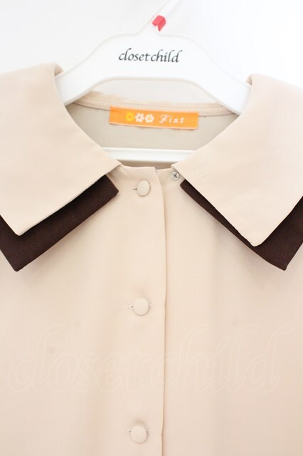 Fi.n.t / ダブル衿配色タイ付きブラウス ベージュ×ブラウン O-26-04-06-014-CA-BL-IG-OS [2110060000001773-O-26-04-06-014-CA-BL-IG-OS]