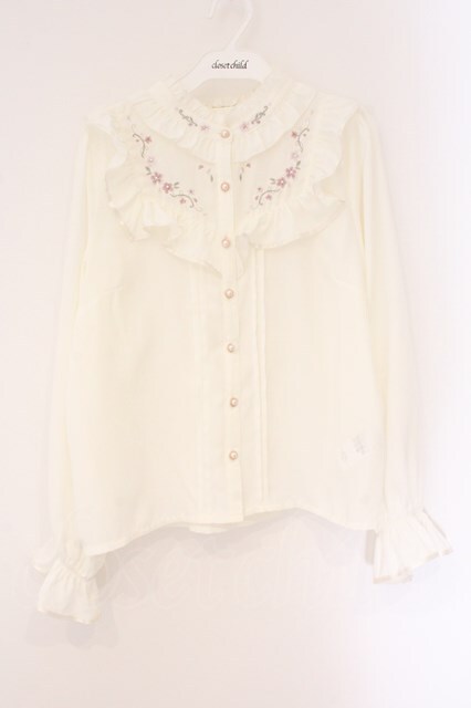 axes femme / 桜刺繍スタンドブラウス M アイボリー O-26-04-06-072-AX-BL-YM-OS