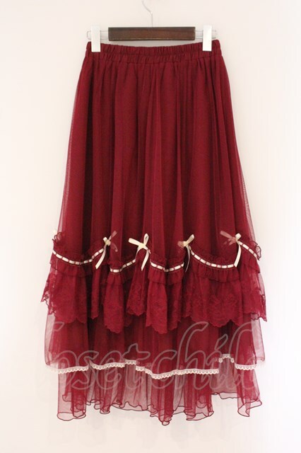 axes femme / ホイップフリルチュールスカート F ワイン O-26-04-06-068-AX-SK-YM-OS