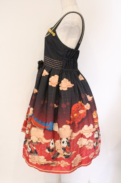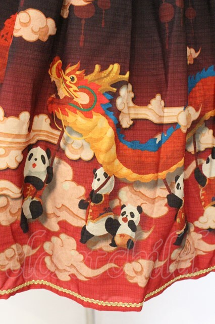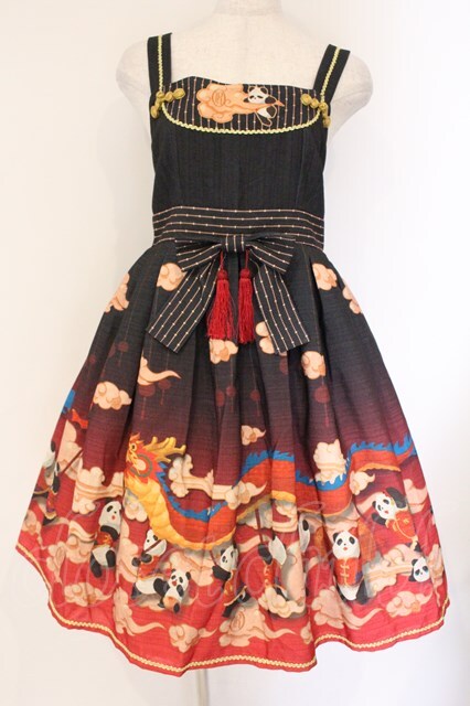 R-SERIES / (海外ロリータブランド)春告げパンダジャンパースカート クロ×アカ O-26-04-06-064-EL-OP-IG-OS