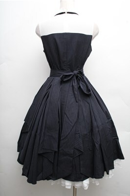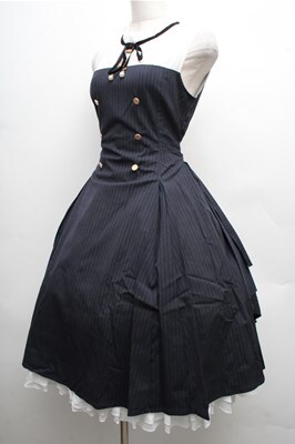中国ロリータ / ヨーク切替ワンピース 紺x白 S-26-04-06-055-LO-OP-AS-ZS