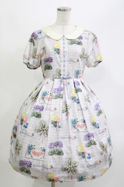 Leur Getter / Flower Card袖付ワンピース M グレー H-26-04-11-1001-LU-OP-KB-ZH [2100030000091336-H-26-04-11-1001-LU-OP-KB-ZH]