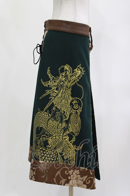Qutie Frash / ドラゴンプリントラップスカート グリーン H-26-04-11-1012-QU-SK-KB-ZH [2100030000091325-H-26-04-11-1012-QU-SK-KB-ZH]