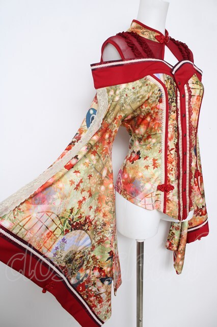 Ozz oneste / チャイナ和柄着物袖オフショルトップス 赤 Y-26-04-11-086-OO-TO-SZ-ZY
