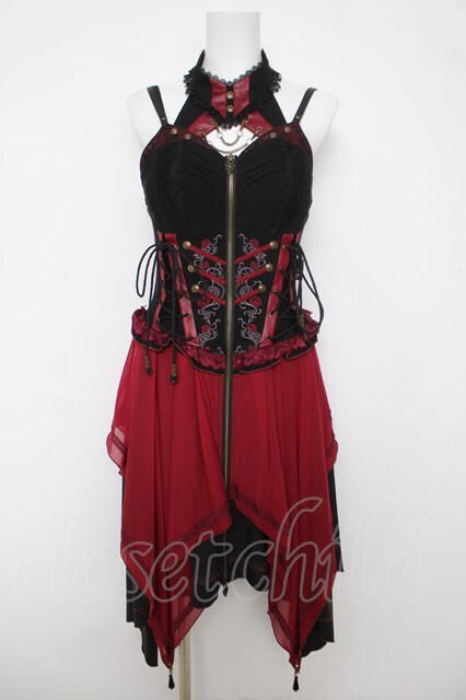 OZZ ANGELO / 薔薇刺繍フリルビスチェワンピース ワインx黒 Y-26-04-11-088-OO-OP-AS-ZY
