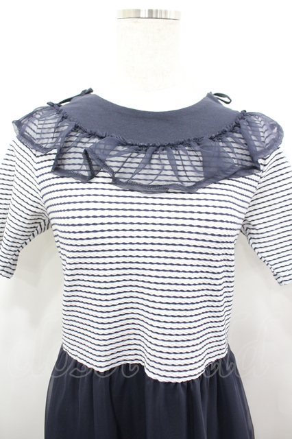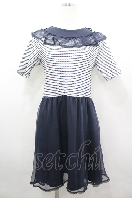 MILK / リリアンDRESS ネイビーX白 I-26-04-06-048-ML-OP-SA-ZI