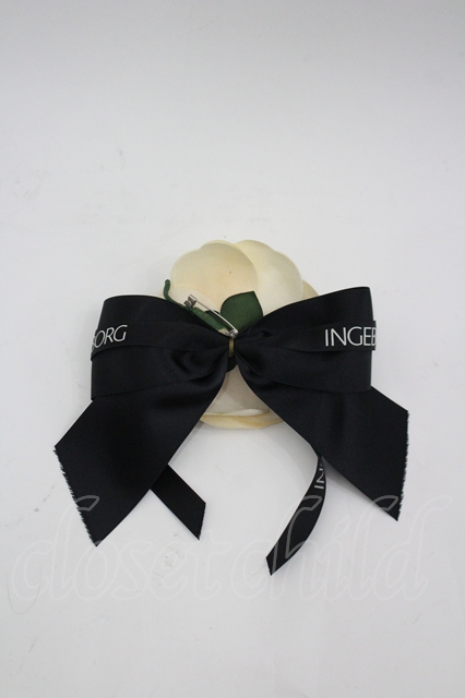 INGEBORG / カメリアリボンコサージュ 白×黒 I-26-04-06-119-LO-ZA-TE-ZI