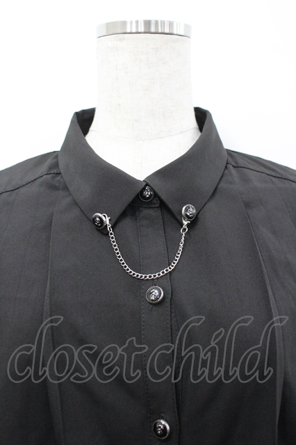 axes femme / チェーン付き半袖ブラウス 黒 I-26-04-06-001-AX-BL-SA-ZI