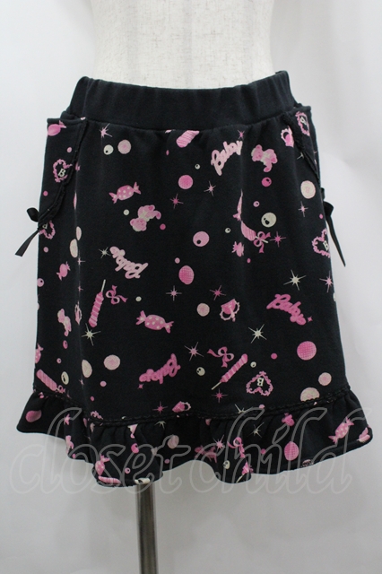 BABY,THE STARS SHINE BRIGHT / キャンディプリントスカート 黒Xピンク I-26-04-06-085-BA-SK-SA-ZI