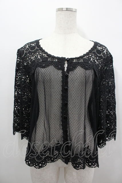 PINK HOUSE / レース&ドットチュール切替カーディガン 黒 I-26-04-06-029-LO-TO-SA-ZI [2100060000050882-I-26-04-06-029-LO-TO-SA-ZI]