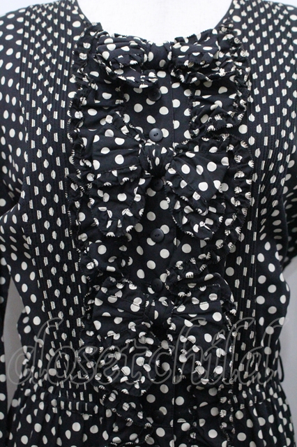INGEBORG / ドットリボン長袖ワンピース 黒×白 I-26-04-06-073-LO-OP-TE-ZI
