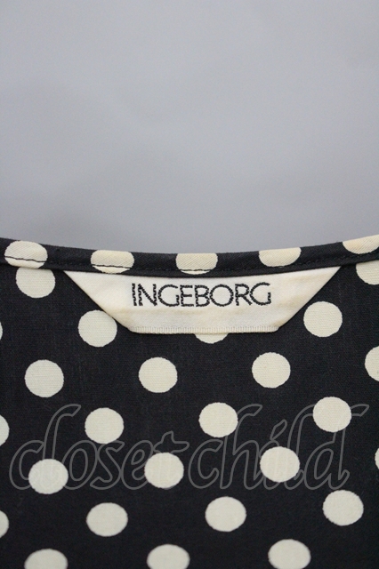 INGEBORG / ドットリボン長袖ワンピース 黒×白 I-26-04-06-073-LO-OP-TE-ZI [2100060000053335-I-26-04-06-073-LO-OP-TE-ZI]