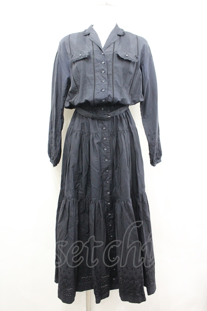 PINK HOUSE / カットワーク開襟長袖ワンピース 黒 I-26-04-06-077-LO-OP-TE-ZI [2100060000053337-I-26-04-06-077-LO-OP-TE-ZI]