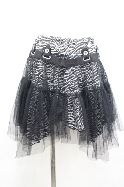 ALGONQUINS / スカルゼブラ柄イレヘムミニスカート ブラック×ホワイト I-26-04-06-099-AL-SK-SA-ZI [2100060000053785-I-26-04-06-099-AL-SK-SA-ZI]