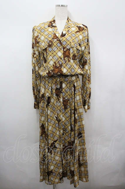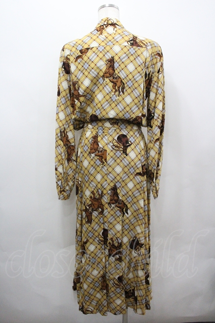 INGEBORG / 馬柄チェックワンピース からし I-26-04-06-068-LO-OP-TE-ZI [2100060000053346-I-26-04-06-068-LO-OP-TE-ZI]