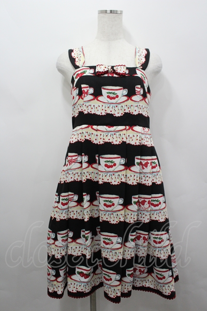 Emily Temple cute / Tea cupノースリーブワンピース 黒 I-26-04-06-056-ET-OP-SA-ZI