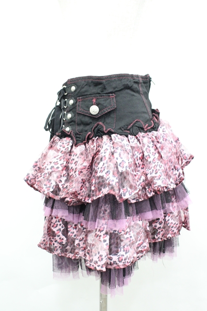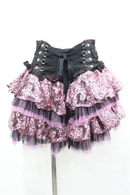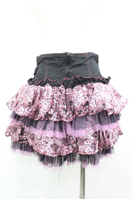 ALGONQUINS / レオパードptコルセット風スカート ブラック×ピンク I-26-04-06-096-AL-SK-SA-ZI
