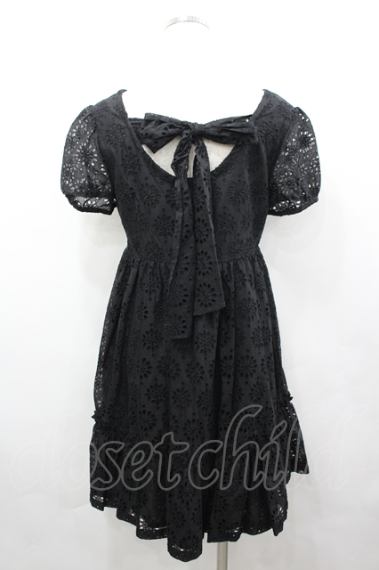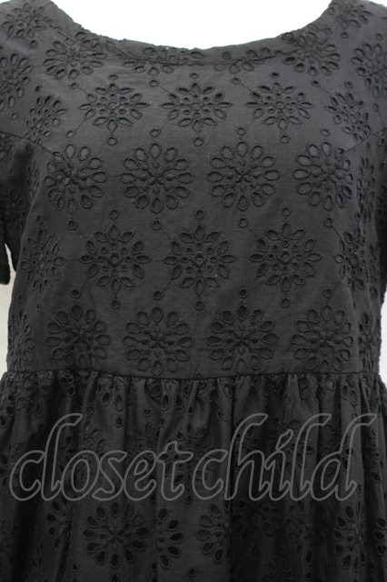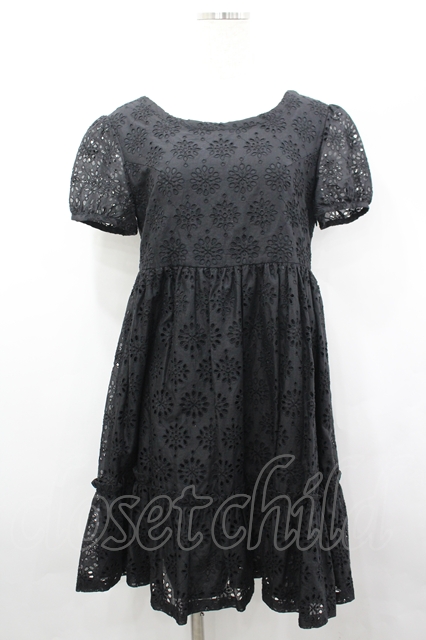 Jane Marple / フラワーレース半袖ワンピース 黒 I-26-04-06-058-JM-OP-SA-ZI