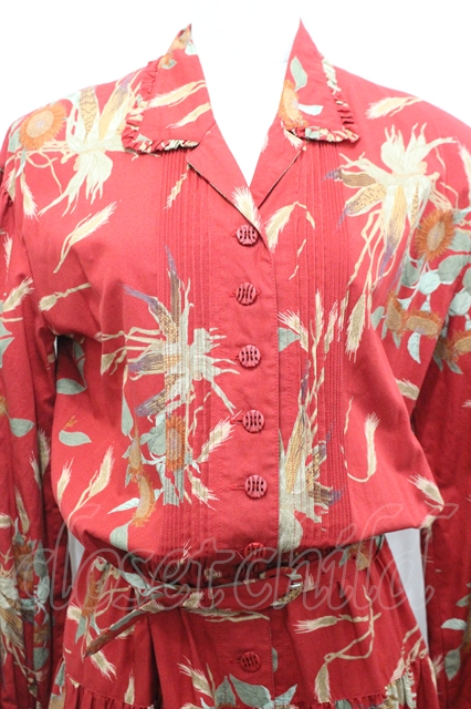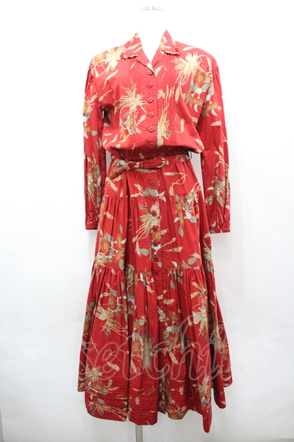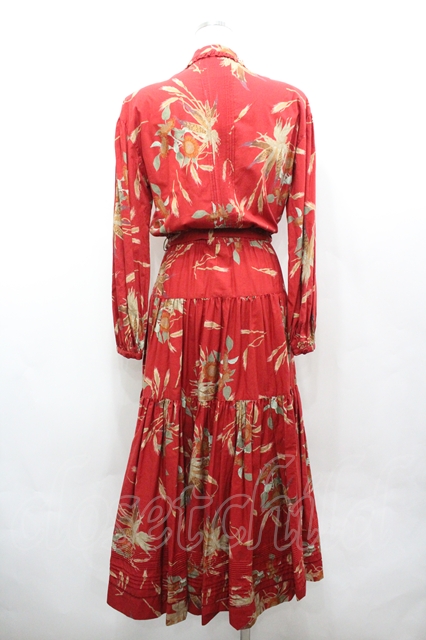 INGEBORG / ひまわり&とうもろこしプリントワンピース 赤 I-26-04-06-072-LO-OP-TE-ZI