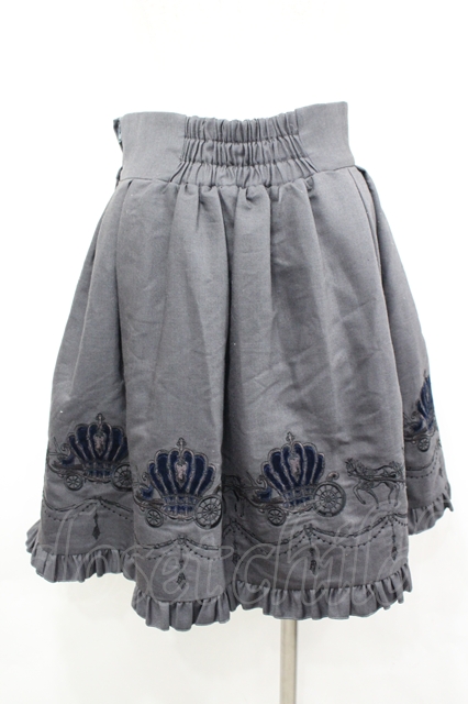 BPN / 馬車刺繍スカート M グレーX青X黒 I-26-04-06-095-GO-SK-SA-ZI