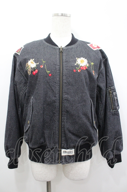 PINK HOUSE / 雛菊とさくらんぼ刺繍入りリバーシブルブルゾン 黒Xデニム I-26-04-06-033-LO-JA-SA-ZI [2100060000050896-I-26-04-06-033-LO-JA-SA-ZI]