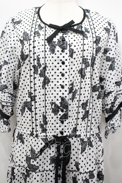PINK HOUSE / 水玉りぼんプリントワンピース 白X黒 I-26-04-06-074-LO-OP-SA-ZI [2100060000053767-I-26-04-06-074-LO-OP-SA-ZI]