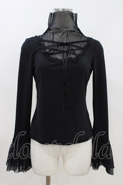 Moi-meme-Moitie / チュール編み上げカットソー ブラック H-26-04-12-1014-MO-TO-KB-ZH [2100030000091339-H-26-04-12-1014-MO-TO-KB-ZH]