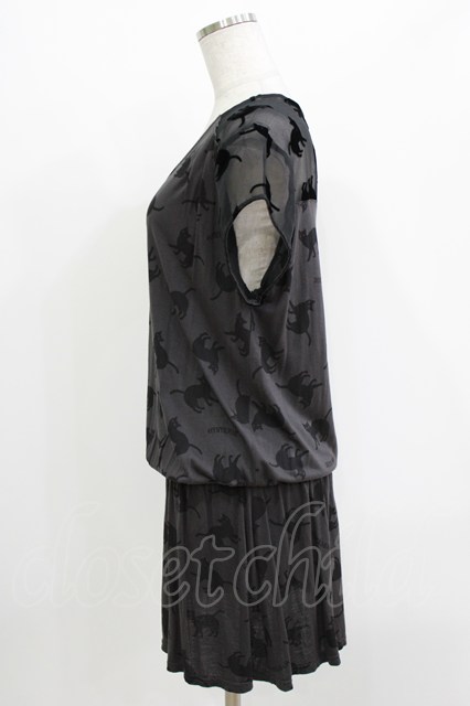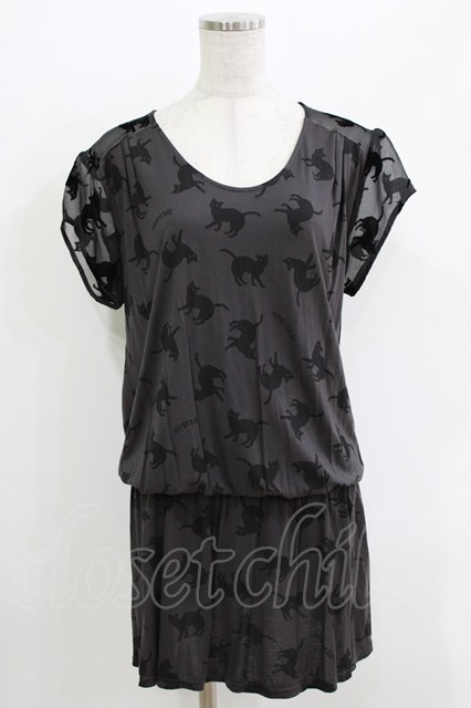 HYSTERIC GLAMOUR / キャットプリントカットワンピース グレー H-26-04-12-028-PU-OP-KB-ZH