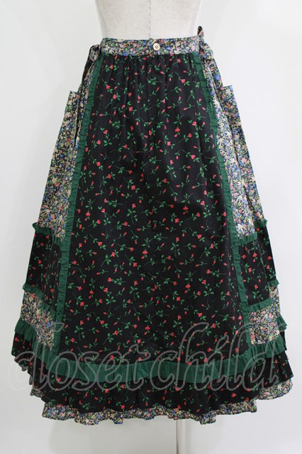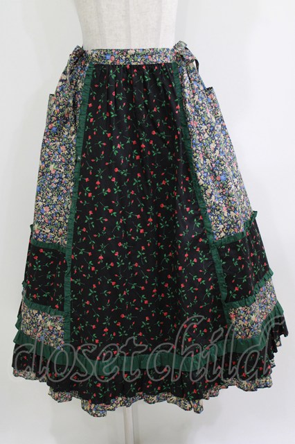 Jane Marple / Demi & Birdsongペザントスカート ブラック×ブラック×グリーン H-26-04-12-015-JM-SK-KB-ZH