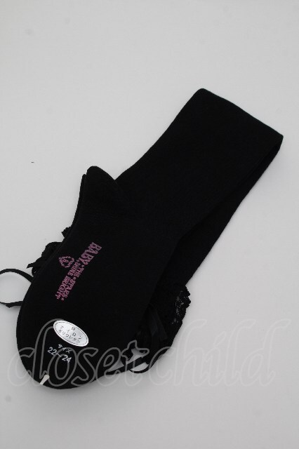 BABY,THE STARS SHINE BRIGHT / リボン通しレースオーバーニーソックス 黒 S-26-04-07-003-BA-ZA-HR-ZS [2100020000039137-S-26-04-07-003-BA-ZA-HR-ZS]