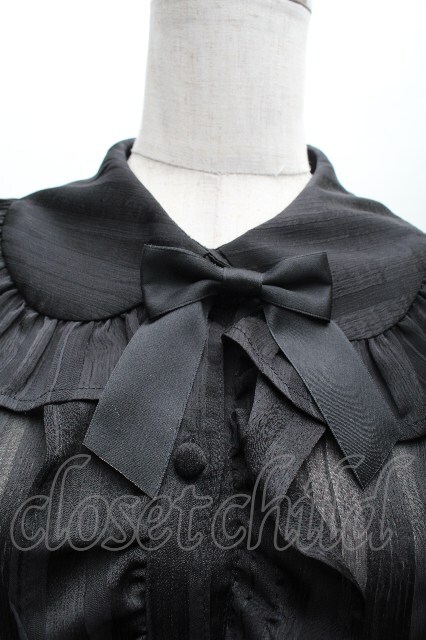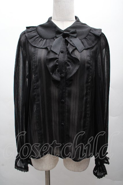 axes femme kawaii / ストライプシアーブラウス 黒 S-26-04-07-044-AX-BL-HR-ZS