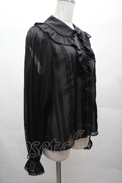 axes femme kawaii / ストライプシアーブラウス 黒 S-26-04-07-044-AX-BL-HR-ZS [2100020000039792-S-26-04-07-044-AX-BL-HR-ZS]