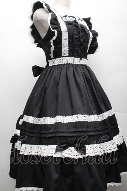Chalmiere / ハッピーフリルジャンパースカートセット 黒x白 S-26-04-07-054-0-OP-HR-ZS