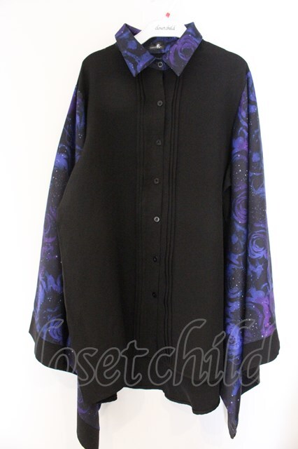 NieR Clothing / 着物風袖SHIRT【ROSE】 シャツ F ブラック×パープル O-26-04-07-015-PU-BL-OW-OS [2100080000079363-O-26-04-07-015-PU-BL-OW-OS]