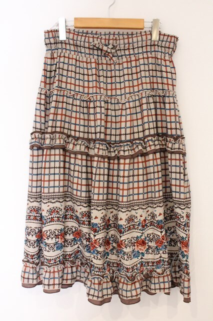 axes femme / パネル柄ロングスカート M ベージュ×ブラウン O-26-04-09-066-AX-SK-IG-OS