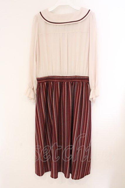 axes femme / ストライプセーラーワンピース M ワイン×キナリ O-26-04-09-052-AX-OP-OW-OS [2100080000079542-O-26-04-09-052-AX-OP-OW-OS]