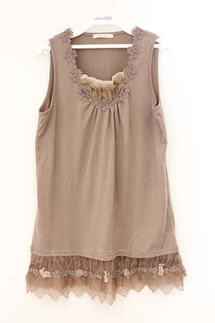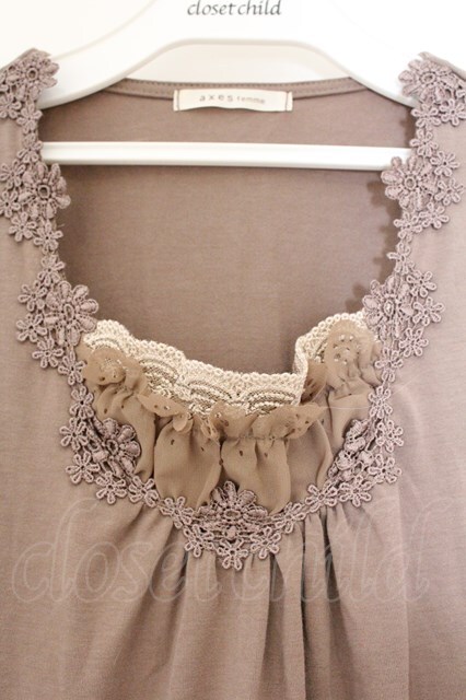 axes femme / レーザーカットフリルタンクトップ ブラウン O-26-04-09-090-AX-TO-IG-OS