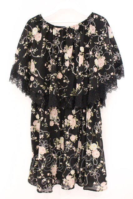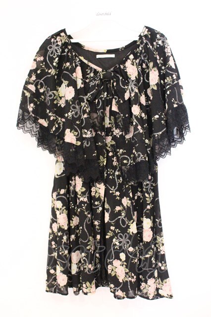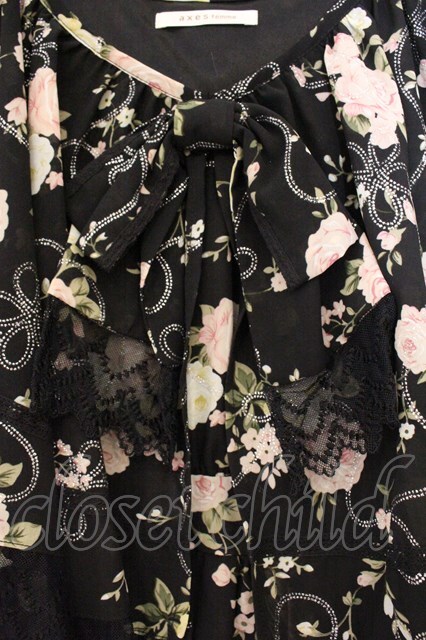 axes femme / ラメシフォンプリントチュニ クロ O-26-04-09-084-AX-OP-IG-OS