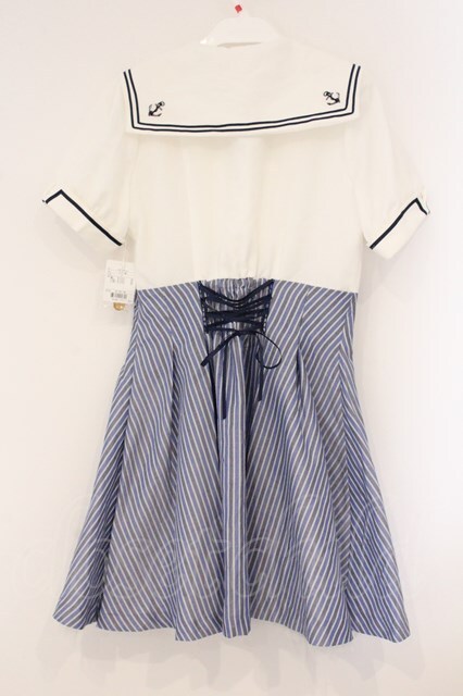 Secret Honey / ストライプセーラーワンピース 2 シロ×ブルー O-26-04-09-039-CA-OP-IG-OS